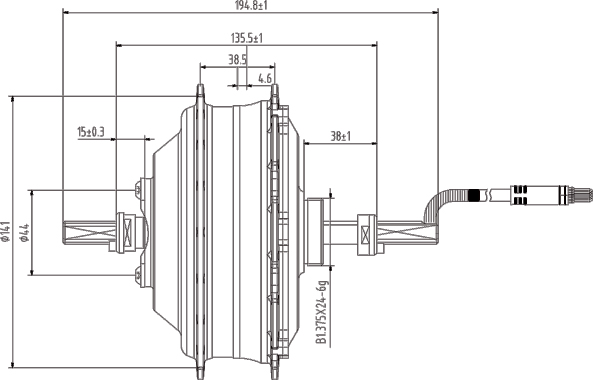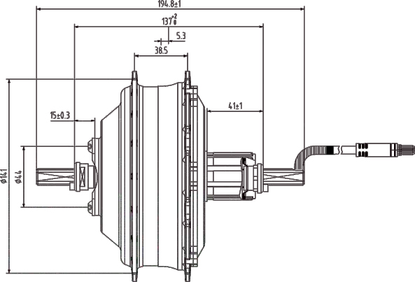 Drawing of DGWH2C , DGWH2S-Rear Drive Motor-city bike